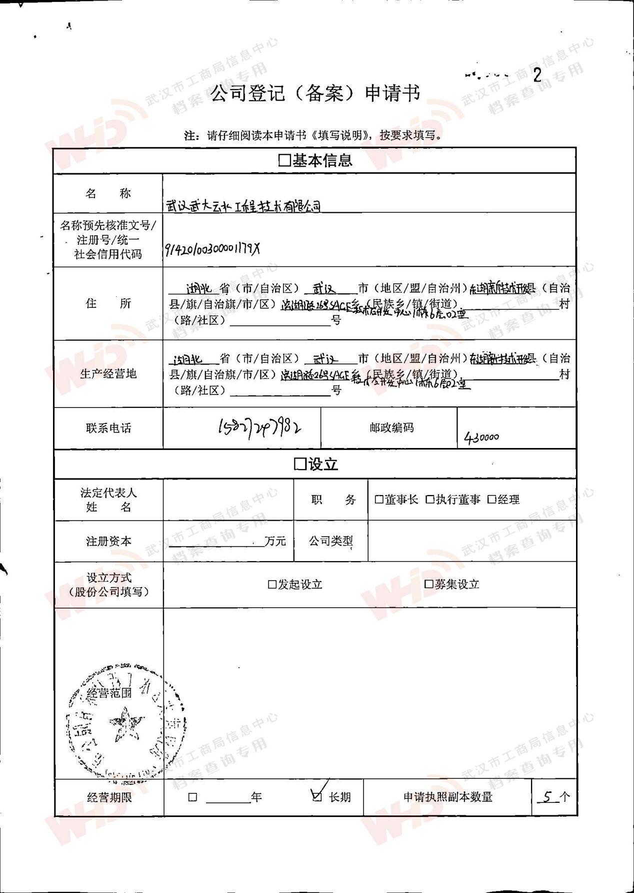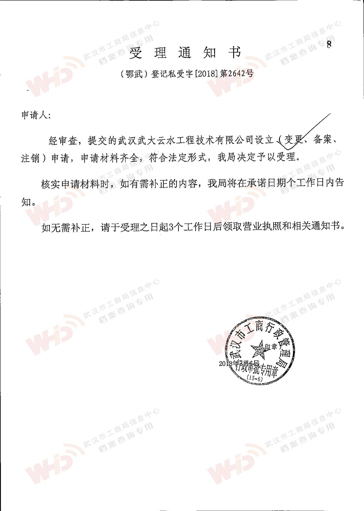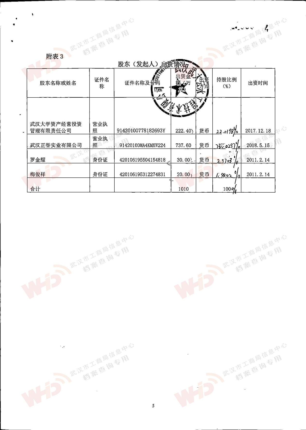 - 2018年5月15日武漢正譽實業集團有限公司入股武漢武大云水工程技術有限公司。